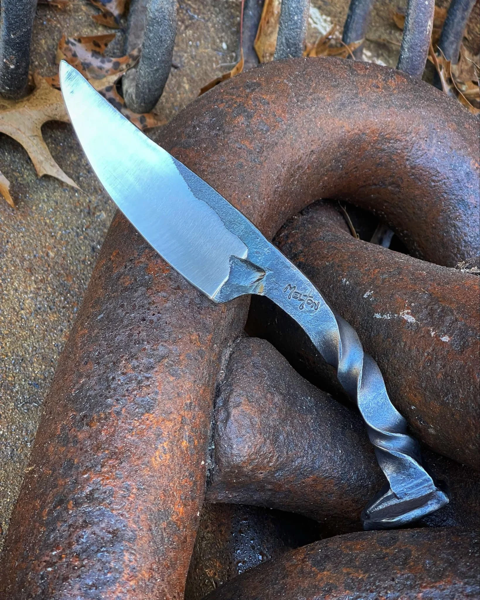 Blacksmith’s knife forged from 1084, Kydex sheath.