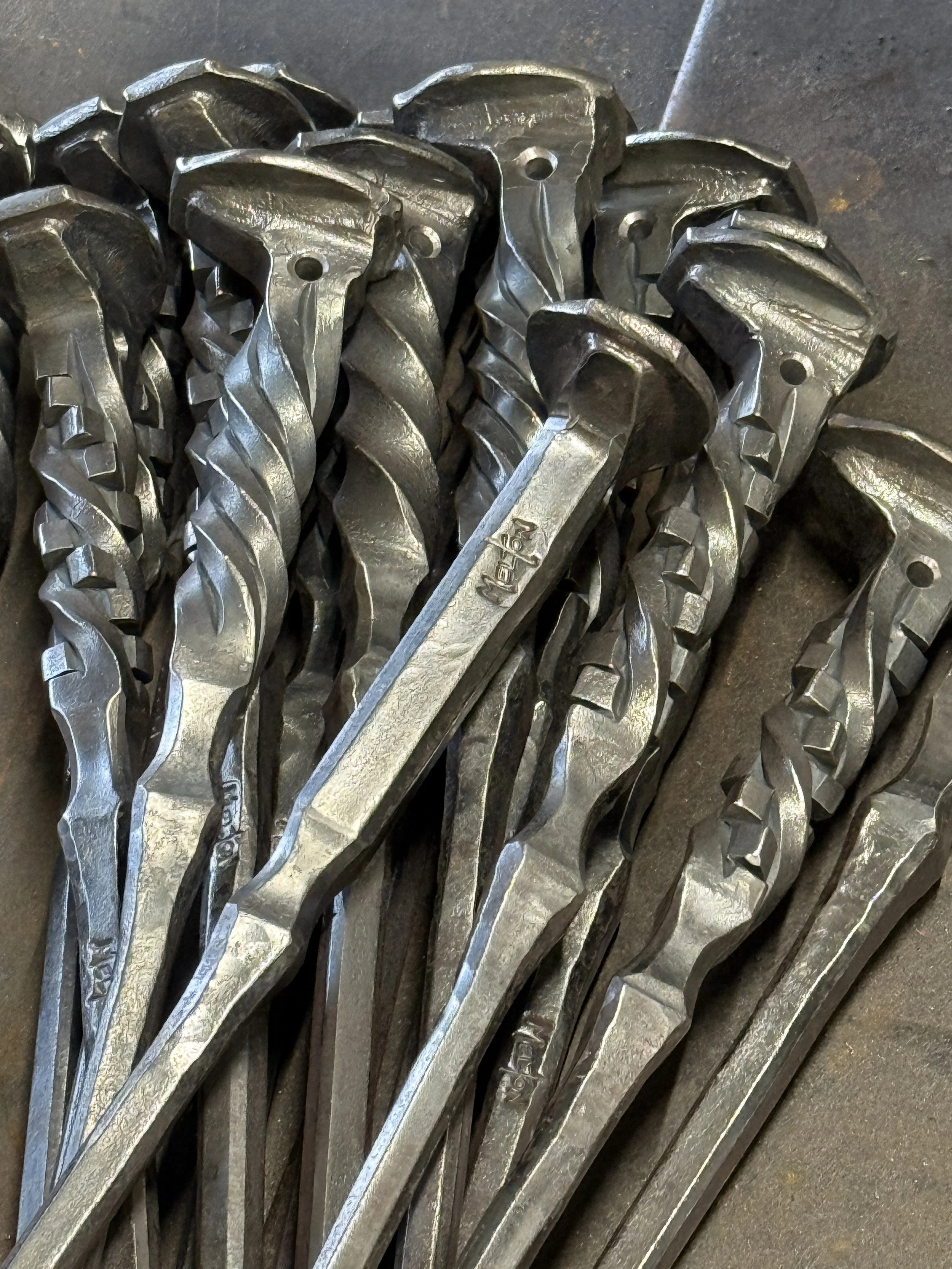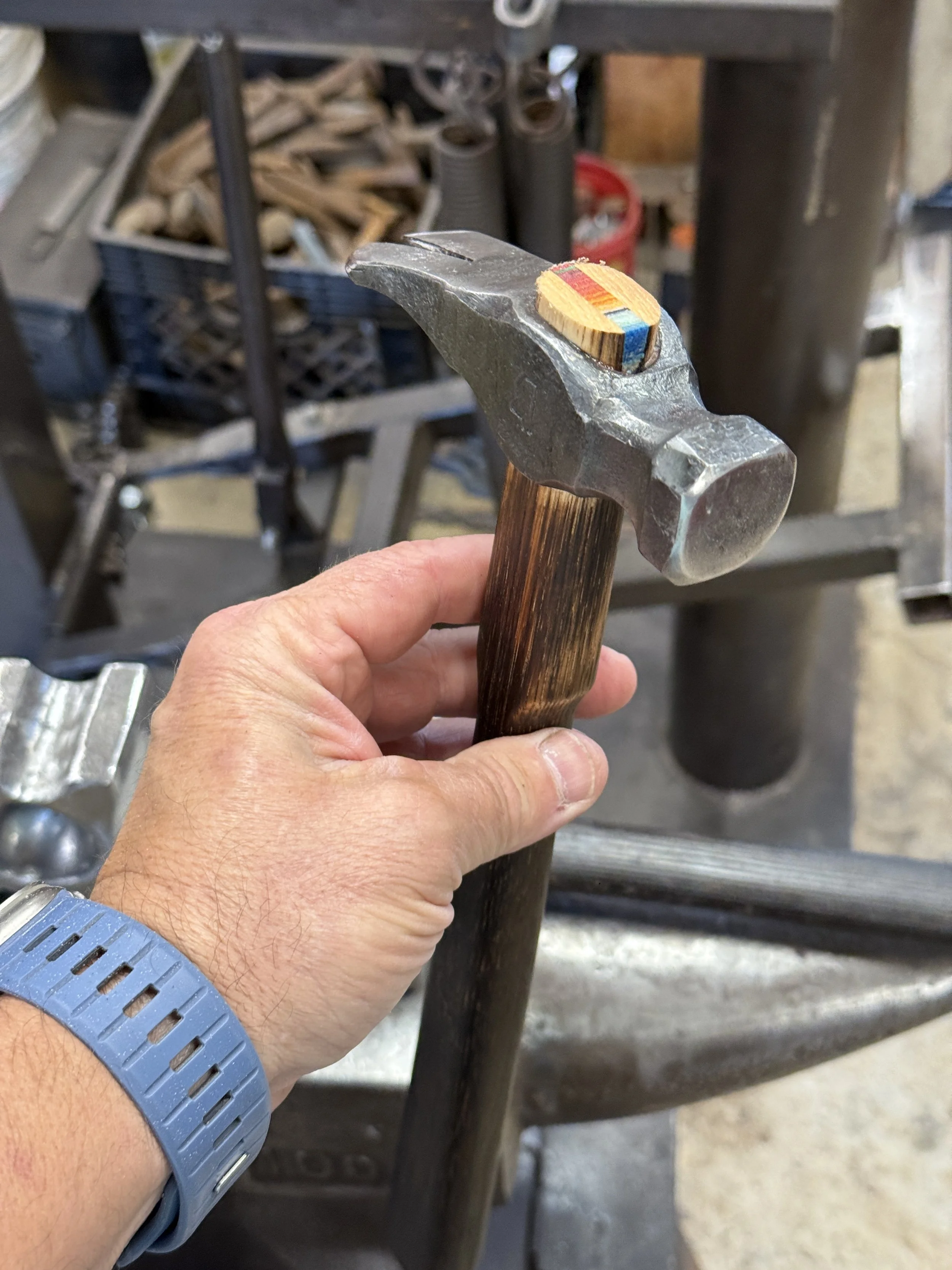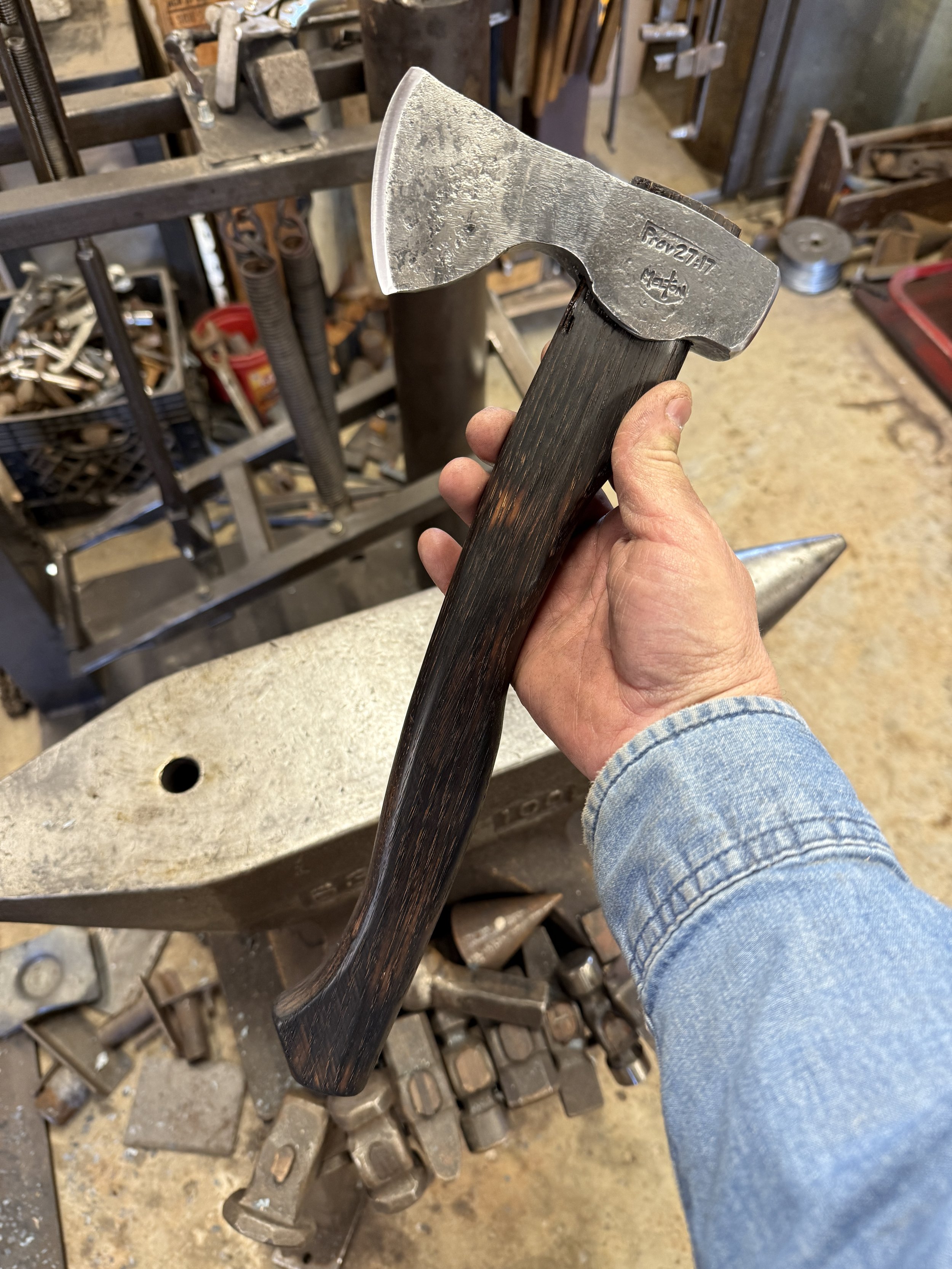 Spiked tomahawk forged from a ball pein hammer that belonged to the customer’s Grandfather, mahogany handle.